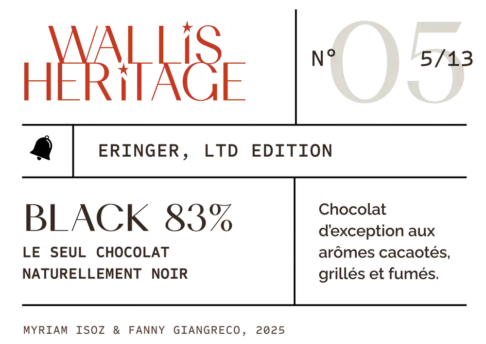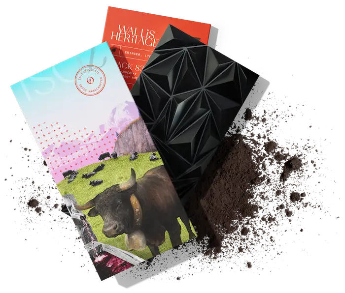 Ce chocolat d’un noir profond et lumineux évoque la robe sublime de l’Eringer. Sa puissance cacaotée, prolongée par une finale douce, reflète la dualité fascinante de cette vache emblématique du Valais — affectueuse, mais fière et combative.