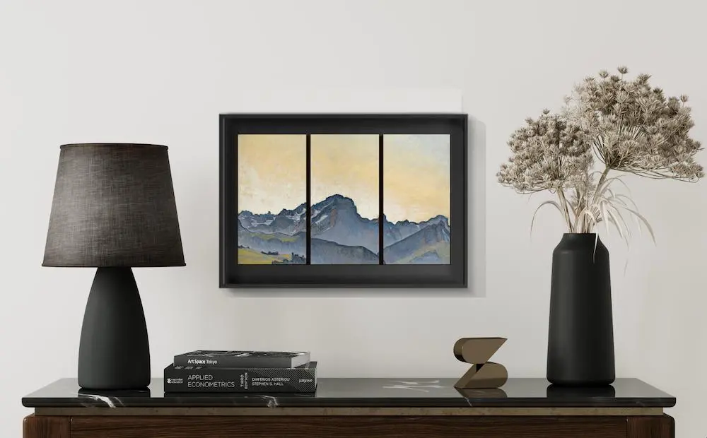 Inspiré par l’esthétique des tableaux classiques, il se compose d’un cadre et d’un passe-partout. Un subtil jeu de reliefs met en valeur les designs des tablettes, pensées comme un triptyque.